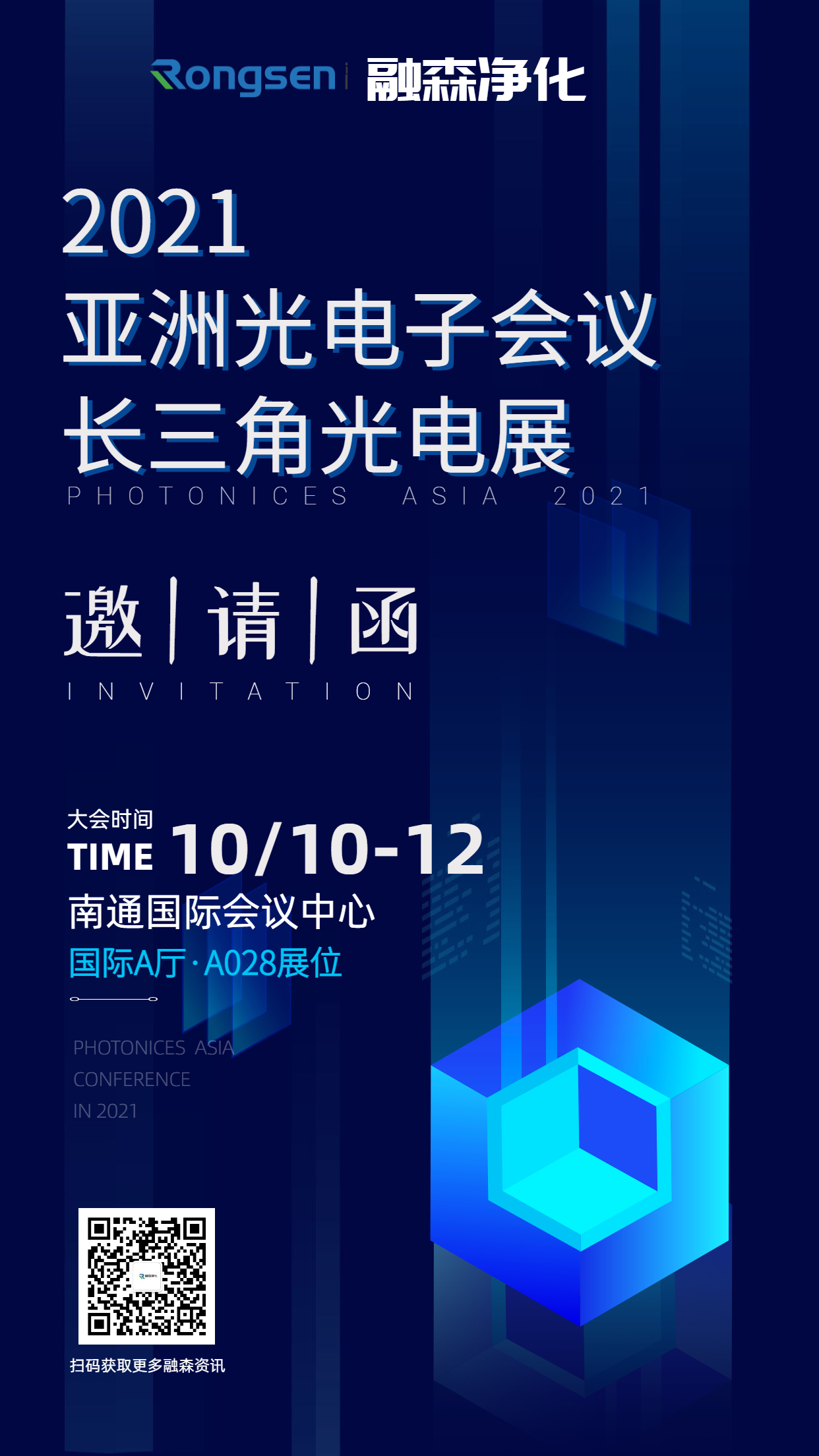 本次亞洲光電子會議,融森凈化受邀參展向大家展示我們在光學工程領域的專業與創新。誠邀您蒞臨國際A廳A028展位,共同探討光學工程的發展與未來。