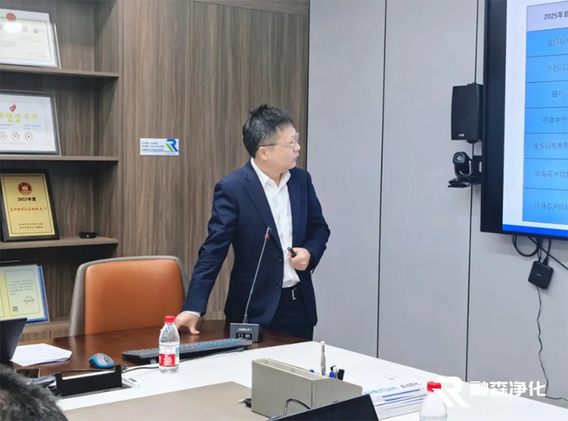 2026年1月17日,融森凈化“2025年度部門工作總結會議”在公司大會議室順利舉行。公司管理層與各職能部門負責人齊聚一堂,在回望中梳理來路,于規劃中擘畫未來,凝聚共識,共謀新章。蔣洪榮總在開場中強調:成長始于系統復盤,成于主動突破。 他肯定了過去一年團隊在復雜環境中的定力與韌性,并鼓勵大家以更系統的思考和前瞻的布局,將經驗轉化為動能,夯實未來跨越發展的基礎。